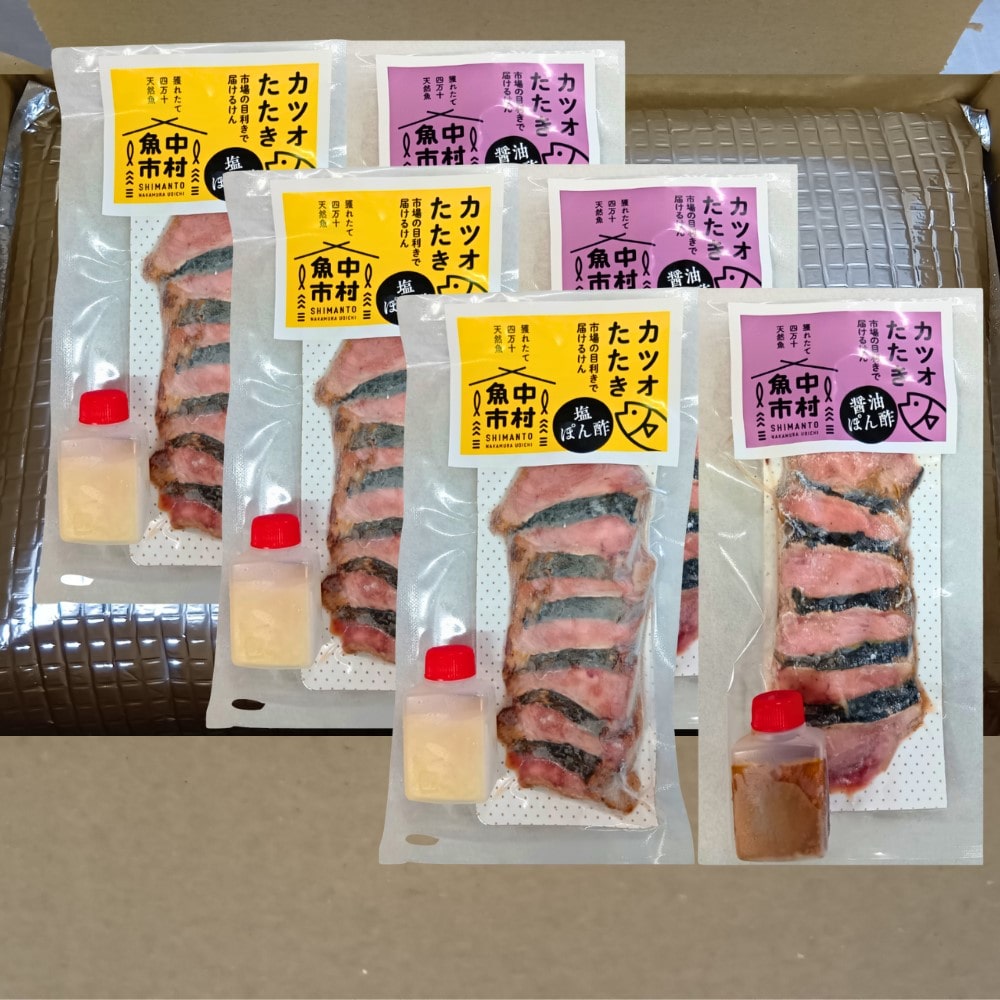 土佐湾の日戻りカツオを、香ばしい藁焼きタタキに。2種の自家製ポン酢で味わえるセットです。解凍・盛り付けだけで極上の一品が完成。ご自宅用にもギフトにもおすすめ。