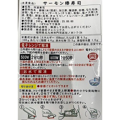 | 商品内容 | サーモン棒寿司 240g×3個 |