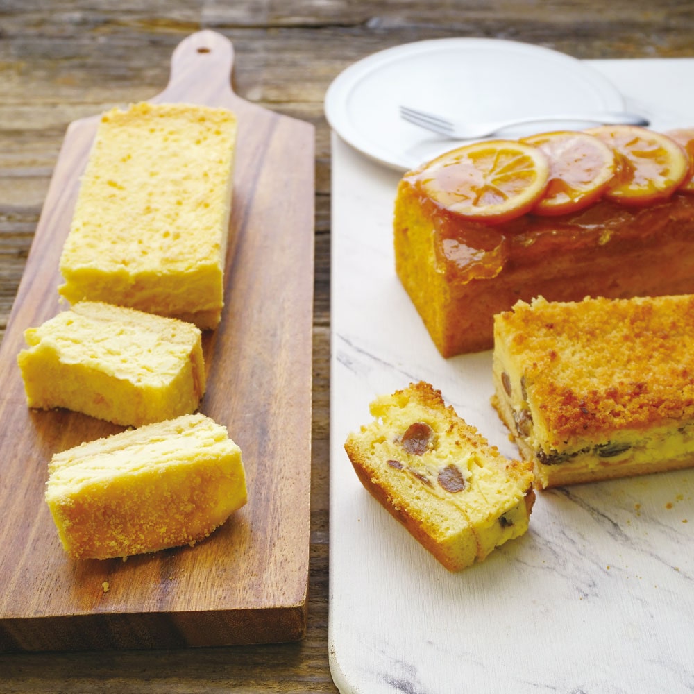 人気のプレミアムチーズケーキ、ゴーダ・マリボー・レッドチェダー等を使用した濃厚フォルマッジ、しっとり焼き上げたオレンジケーキのセットです。