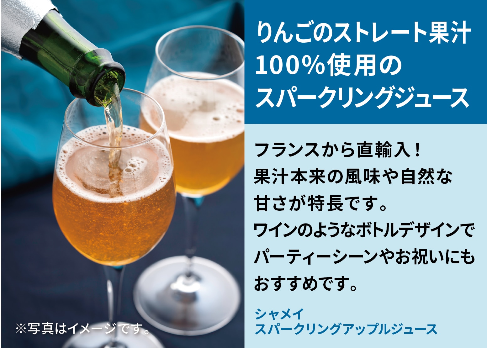 フランス産アップルのストレート果汁を使用した、爽やかな果汁100%スパークリングジュースです。