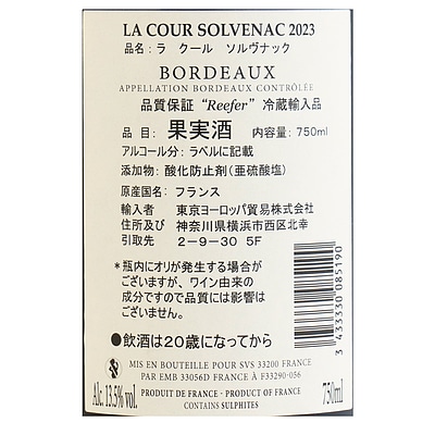 - > フランス ボルドー 2023 ラ クール ソルヴナック 750ml