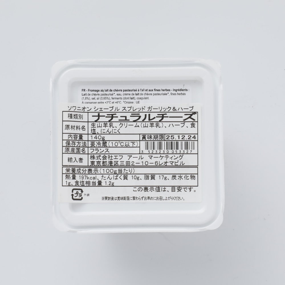 - > ソワニオン シェーブルスプレッドガーリック&ハーブ140g