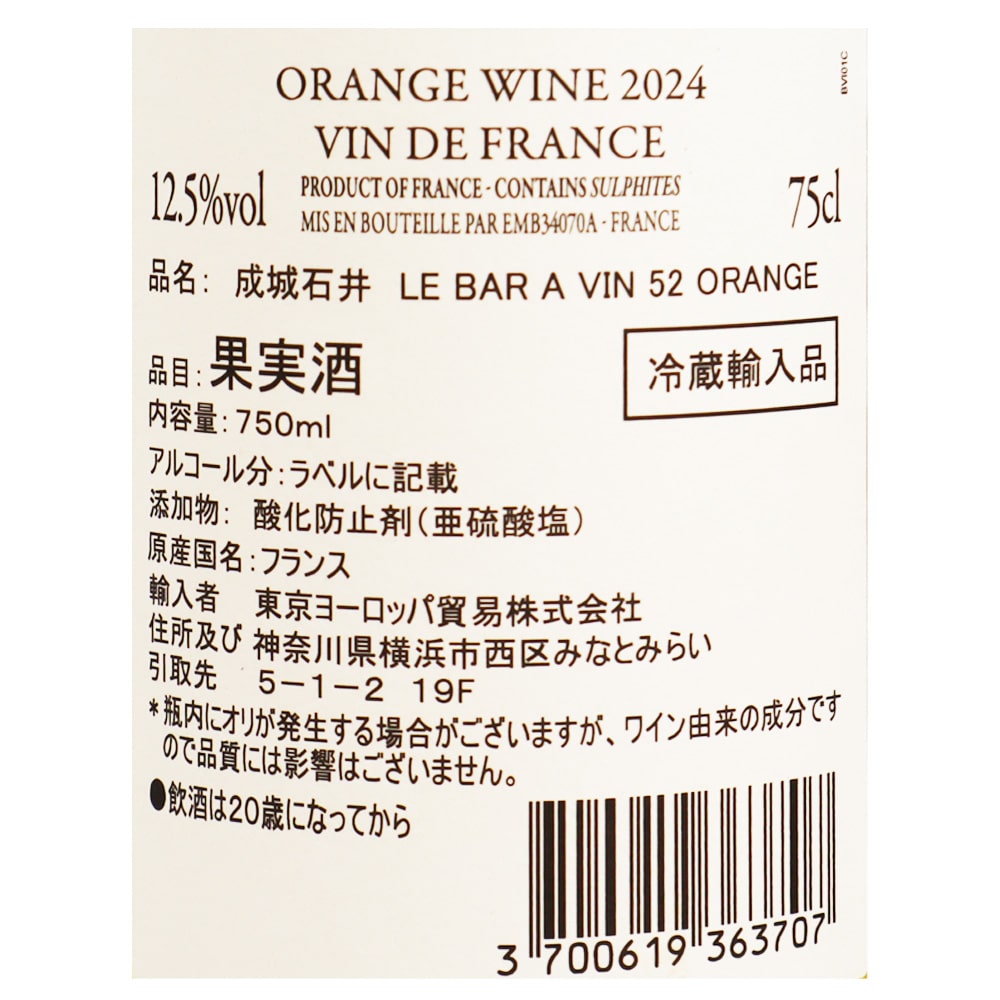 成城石井のワインバーのオレンジワイン。一部樽熟成をしたリッチな風味が食事によりそいます。
