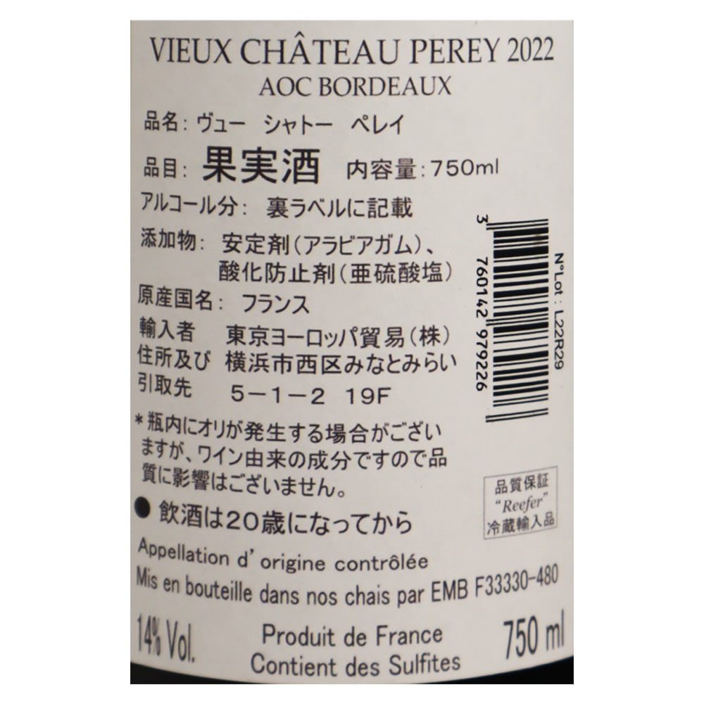 - > フランス ボルドーヴュー シャトー ペレイ 2022 750ml