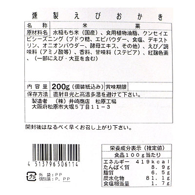 - > 井崎商店 燻製えびおかき 200g