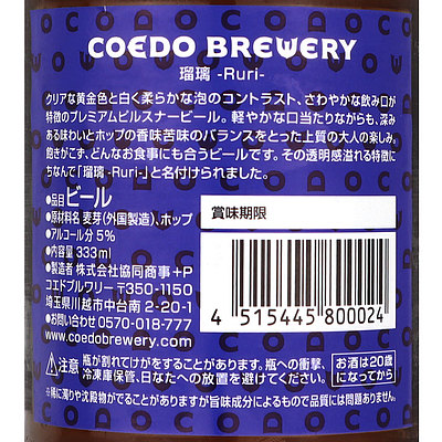 【生産者:コエドブルワリーIBU25】麦芽100%の味わいとホップの香味苦味がバランスした軽やかなプレミアムピルスナー。