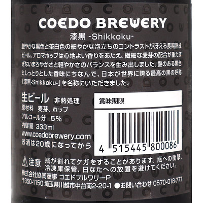 【生産者:コエドブルワリーIBU20】アロマホップと8種類の麦芽の配合によりまろやかさと軽やかさがバランスした黒ビール。