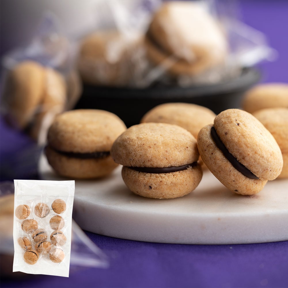 ピエモンテ産ヘーゼルナッツを練り込んだ半球型のビスケットでチョコレートを挟みました。