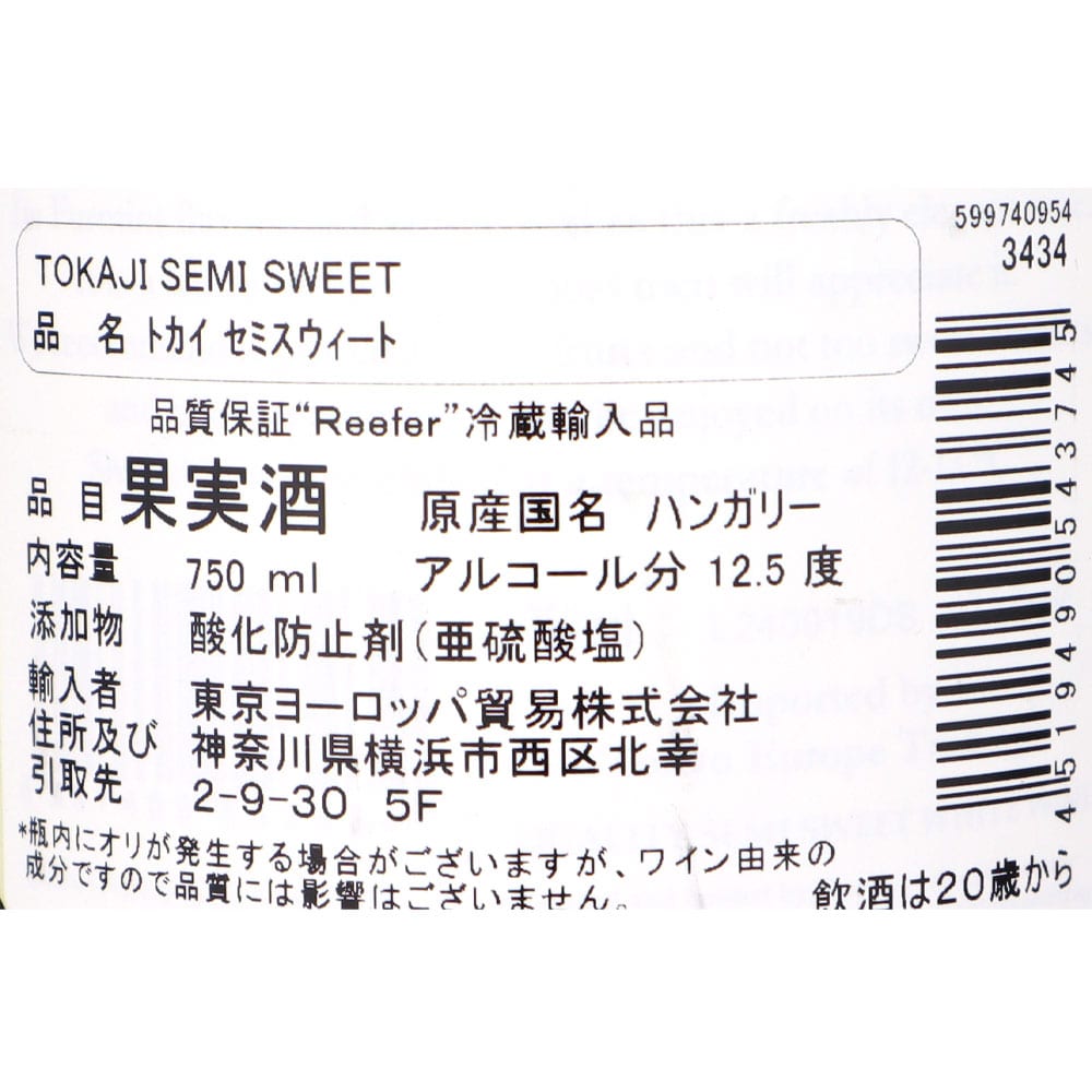 - > ハンガリー トカイ セミスウィート CHエニエ 750ml