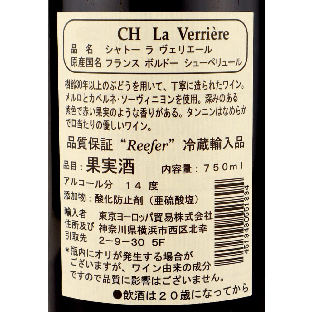 ●品名:シャトー ラ ヴェリエール