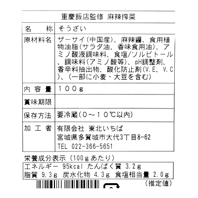 横浜中華街老舗の重慶飯店様監修のザーサイで、辛さと痺れをバランスよく感じる一品です。