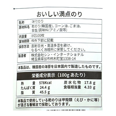 - > シン・インターナショナル おいしい満点のり 8切100枚