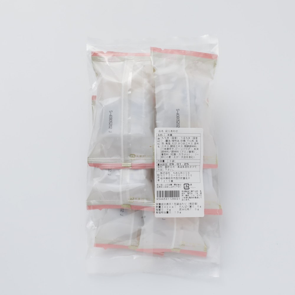 小粒で食べやすいおかきと煎餅の6種類が入った食べきりサイズの小袋を6袋詰合せしました。