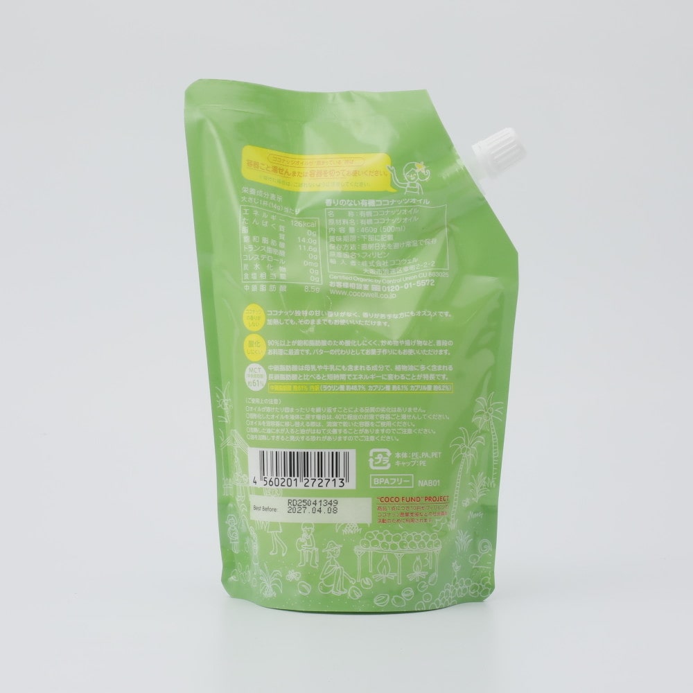 - > ココウェル 香りのない有機ココナッツオイル 460g