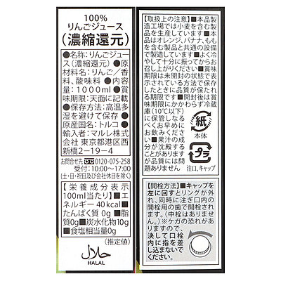トルコ産のりんご果汁を100%使用。甘みと酸味のバランスが良いのが特徴です。