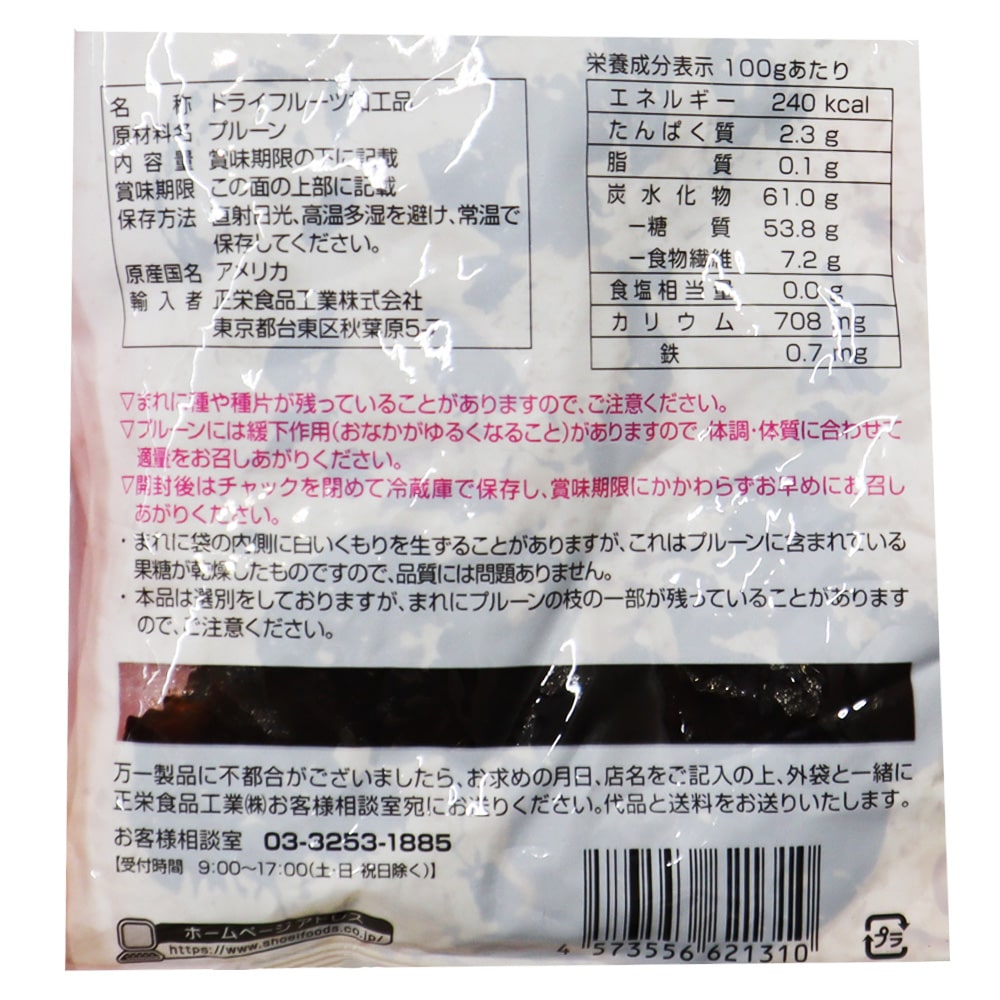 - > 正栄食品工業 12時間以内にパックしたプルーン 180g