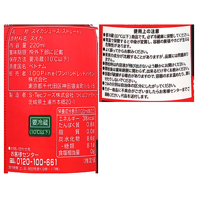 ベトナム産のスイカ果汁を100%使用。スイカの甘みと、みずみずしさをお楽しみ頂けます。