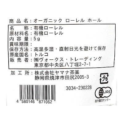- > ヴォークススパイス 有機 ローレルホール(袋) 5g