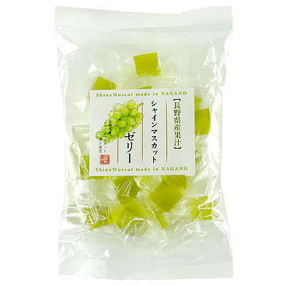 信州長野県産のシャインマスカット果汁を使った一口タイプの寒天ゼリーです。噛むたびに芳醇なかおりが口いっぱいに広がります。