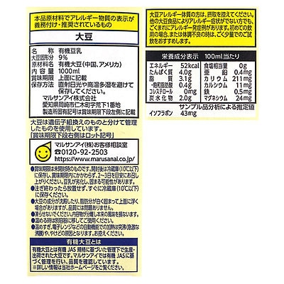 - > マルサン 有機豆乳無調整 1000ml