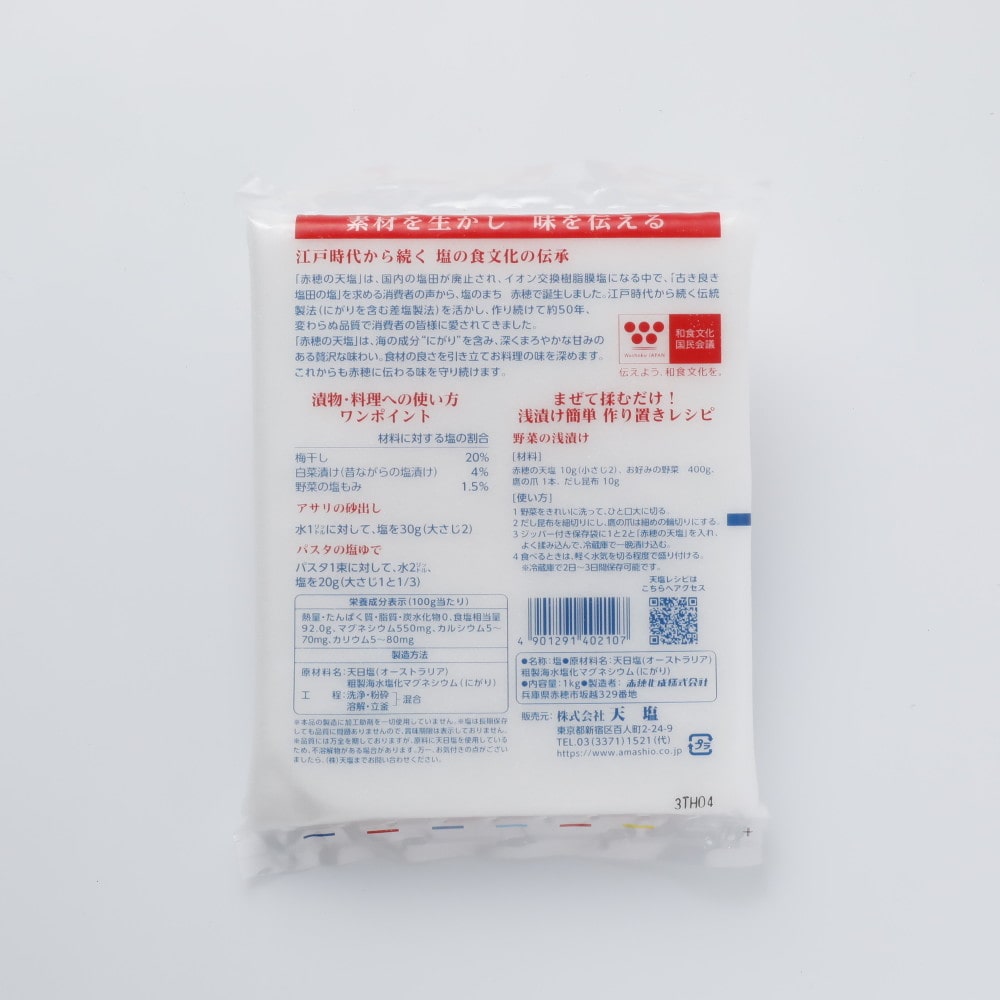 赤穂の天塩は、海水中の自然に溶け込んだニガリ成分を多く含んだおいしい塩です。