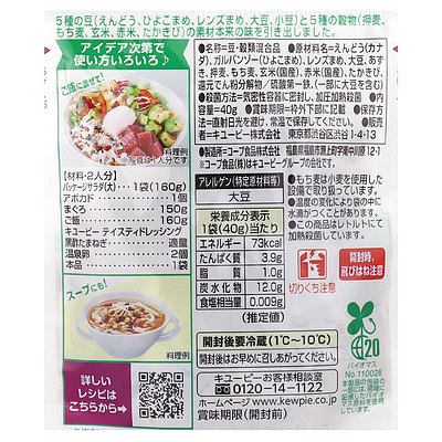 5種の豆と5種の穀物の素材本来の味を引き出しました。そのまま、サラダや混ぜご飯にお使いいただけます。