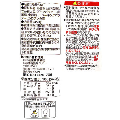 - > 昭和産業 黄金天ぷら粉 450g