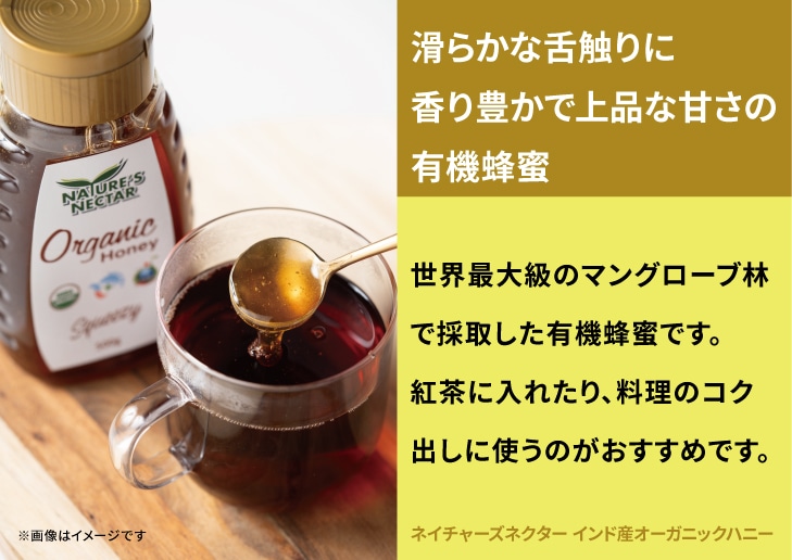 滑らかな舌触りに香り豊かで上品な甘さの有機はちみつ。