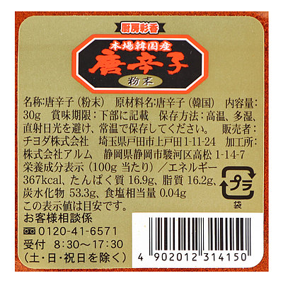 - > 厨房菜香唐辛子 韓国産粉末 30G