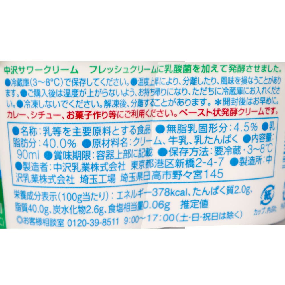 - > 中沢 サワークリーム 90ml [0809]