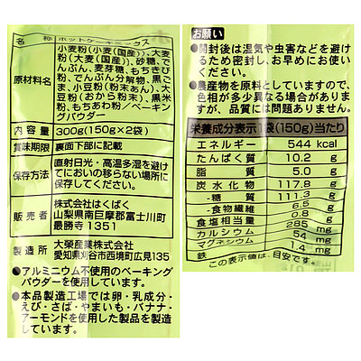 お豆と雑穀を粉末にしてホットケーキミックスにしました。自然な味わいのやさしいホットケーキをお楽しみいただけます。