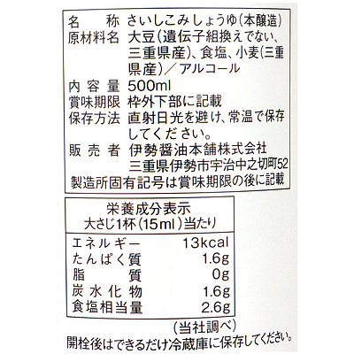 - > ヤマモリ 伊勢醤油吟香仕込み 500ML