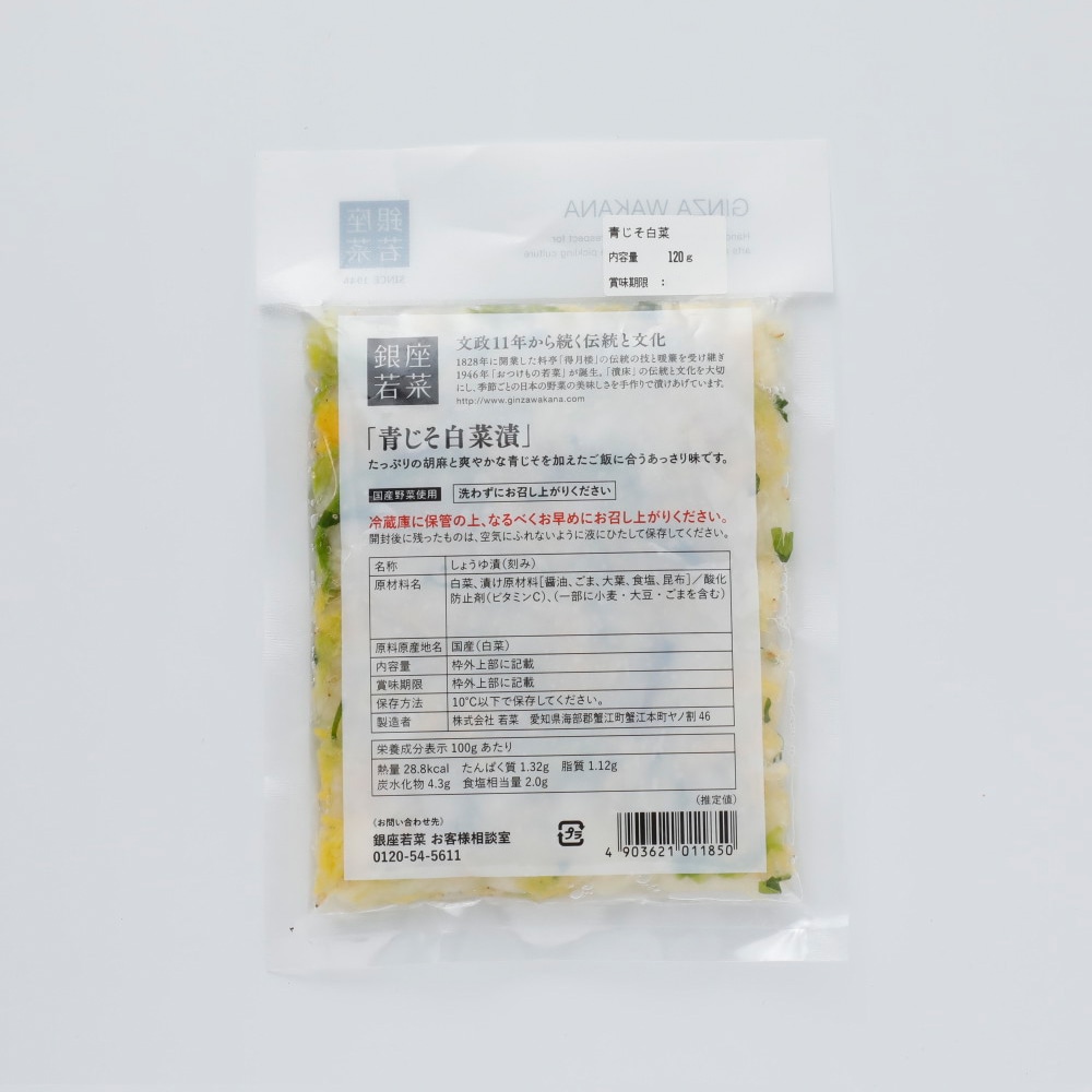 たっぷりの胡麻と爽やかな青じそを加えた風味豊かな白菜漬です。