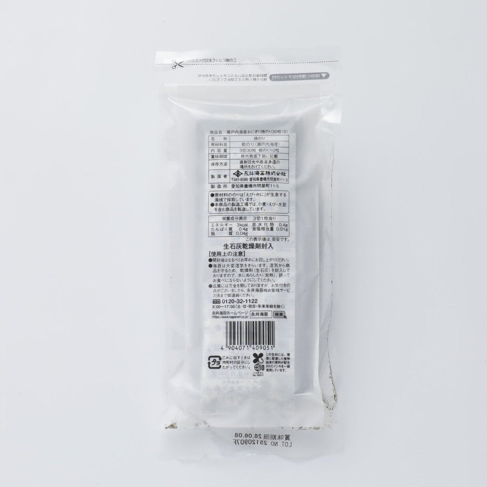 - > 永井海苔 瀬戸内海産おにぎり焼のり 3切30枚