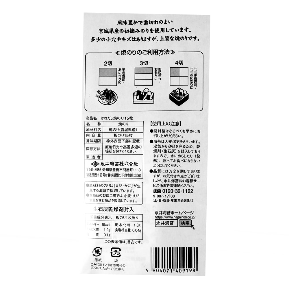 - > 永井海苔 宮城県産初摘みはねだし焼のり 15枚