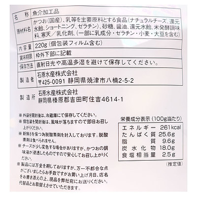柔らかく煮上げたカツオの角煮にチーズをのせ、チーズとカツオの旨味が引き立てあう美味しさです。