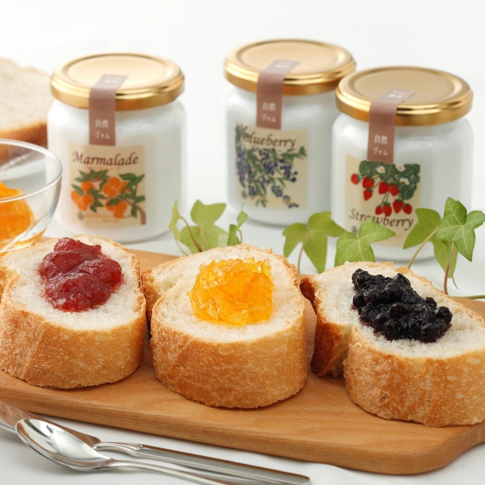 | 商品内容 | 自然ジャム いちご 220g×1個 / 自然ジャム ブルーベリー 220g×1個 / 自然ジャム マーマレード 220g×1個 / 自然ジャム りんご 220g×2個 / 自然ジャム あんず 220g×1個 |