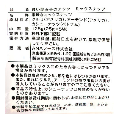 - > ANAフーズ 賢い間食 金のナッツミックスナッツ 125g(25×5袋)