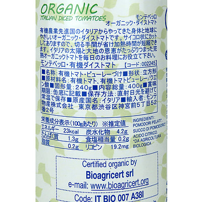 - > モンテベッロ 有機ダイストマト 400g×3個