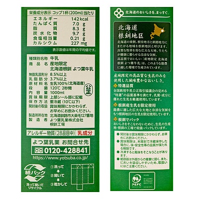- > よつ葉産地限定北海道根釧よつ葉牛乳【特選】 1000ml