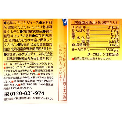 澄んだ甘みのある北海道産にんじんのみを使用しております。