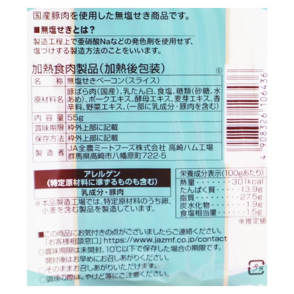 - > 高崎ハム 無塩せきベーコン 55g×5個