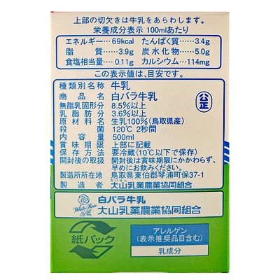 - > 大山白バラ牛乳 500ml×3個 | 月・火出荷不可 D+2