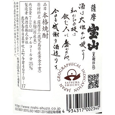 - > 西酒造 薩摩宝山 黒麹仕込 芋 720ml