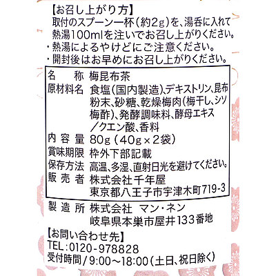 - > 味楽乃里 北海道産昆布使用 紀州梅昆布茶 40g×2袋