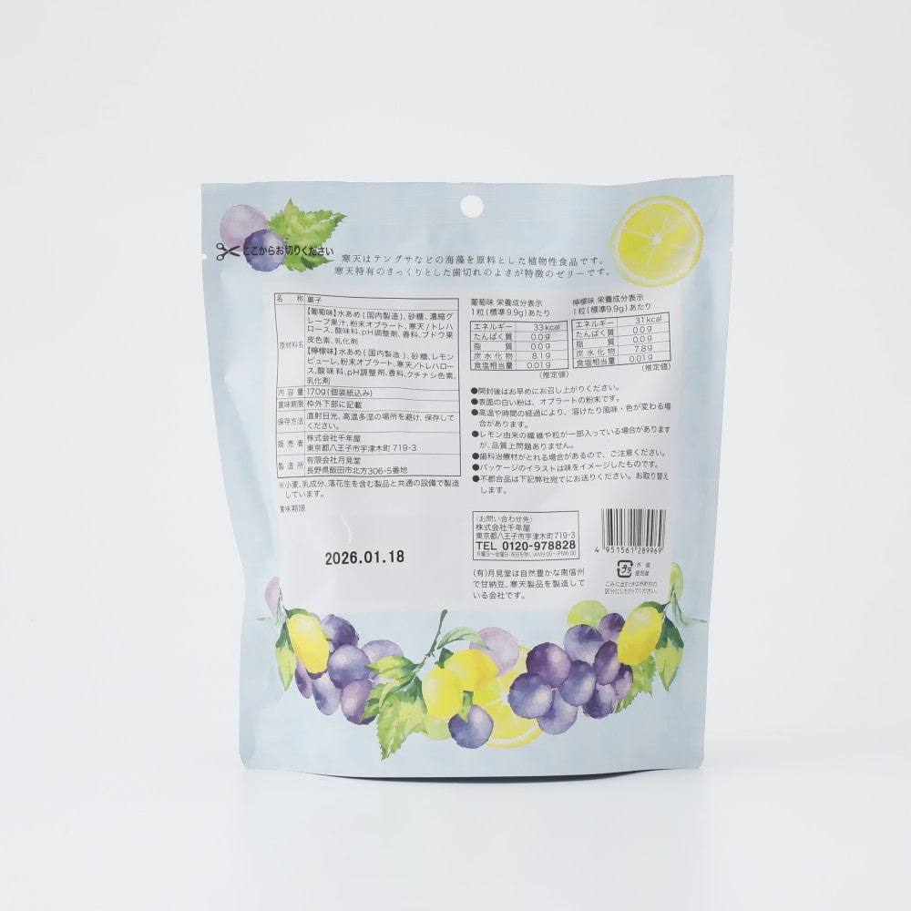 - > 千年屋 ひとくち寒天ゼリー 葡萄&檸檬 170g