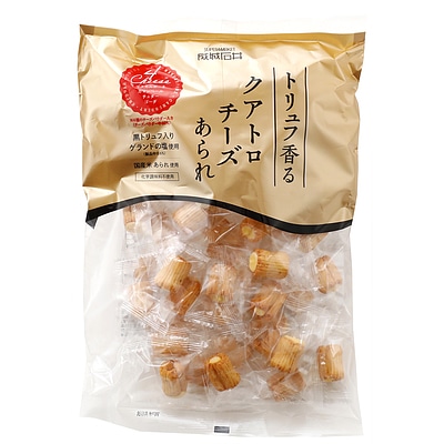 トリュフ風味香る4種チーズのクアトロチーズクリームを、国産の醤油あられに詰込んだ芳醇な味わいのあられです。