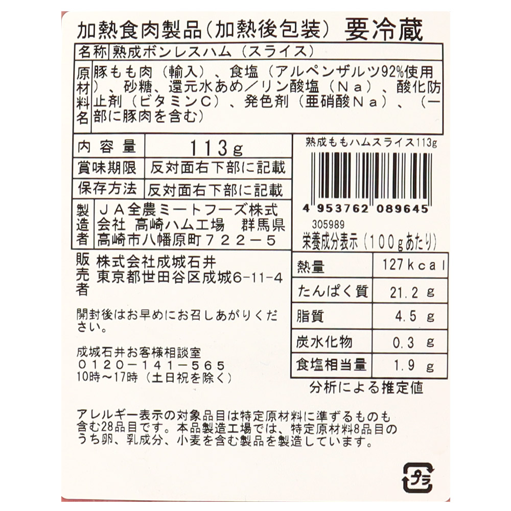 - > 成城石井 熟成ももハムスライス 113g