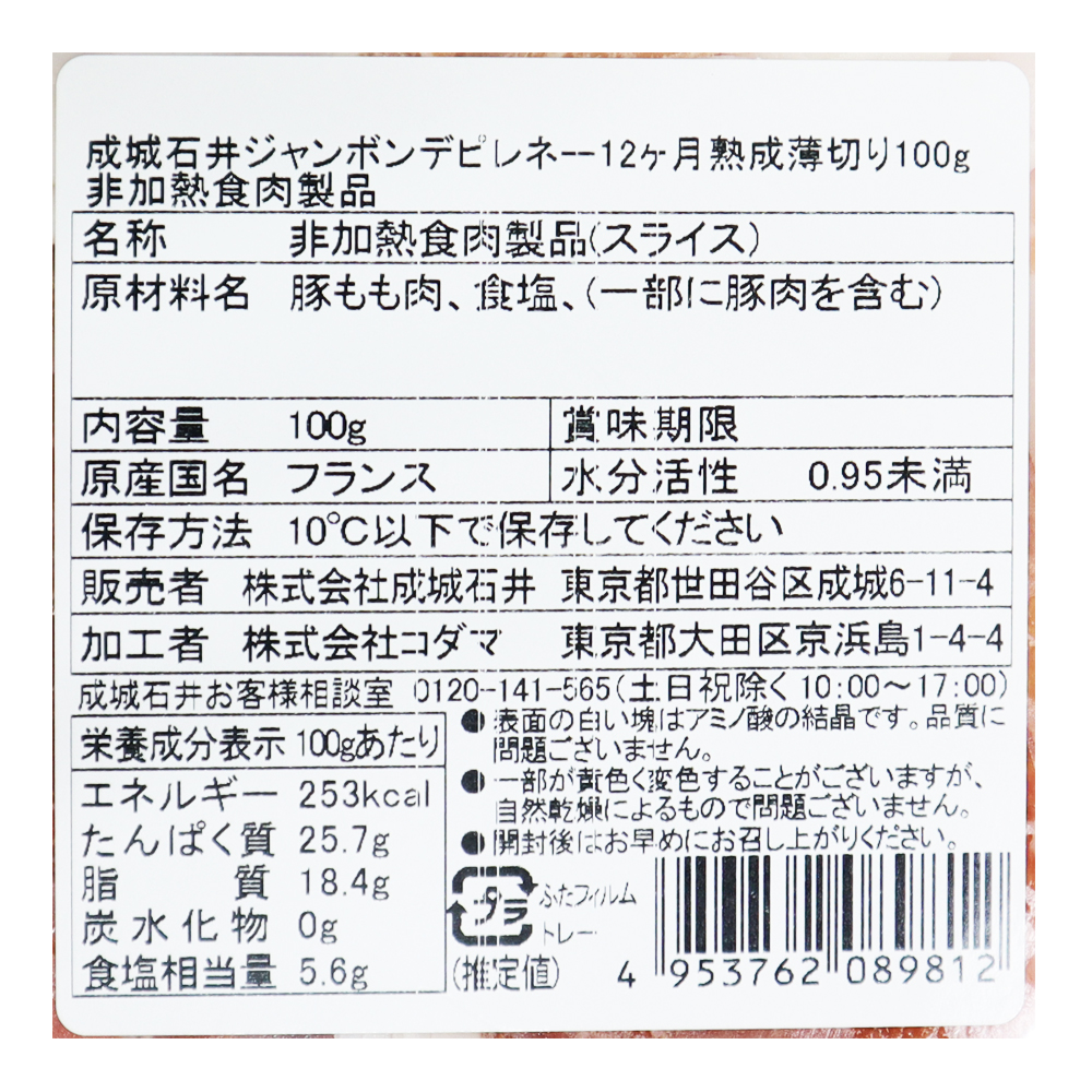 - > 成城石井 ジャンボンデピレネー12ヶ月薄切り 100g