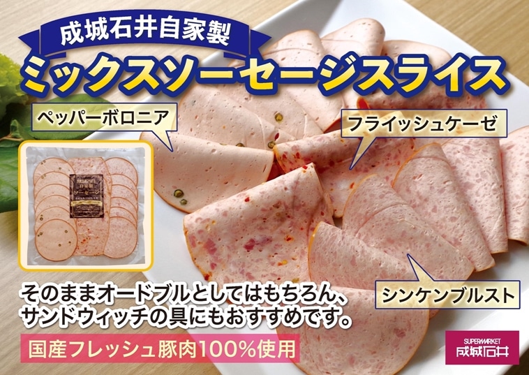 ペッパーボロニア、シンケンブルスト、フライッシュケーゼの3種類がセットになったバラエティパック。